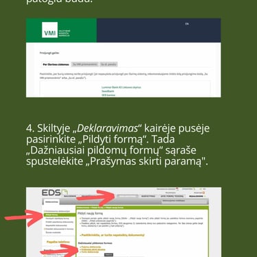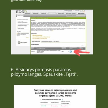 1,2% GPM paramą galite skirti nuo 2025 m. sausio 1 d. iki 2025 m. gegužės 1 d. užpildant prašymą elektroniniu būdu per VMI elektroninio deklaravimo sistemą (EDS). Instrukciją rasite žemiau.