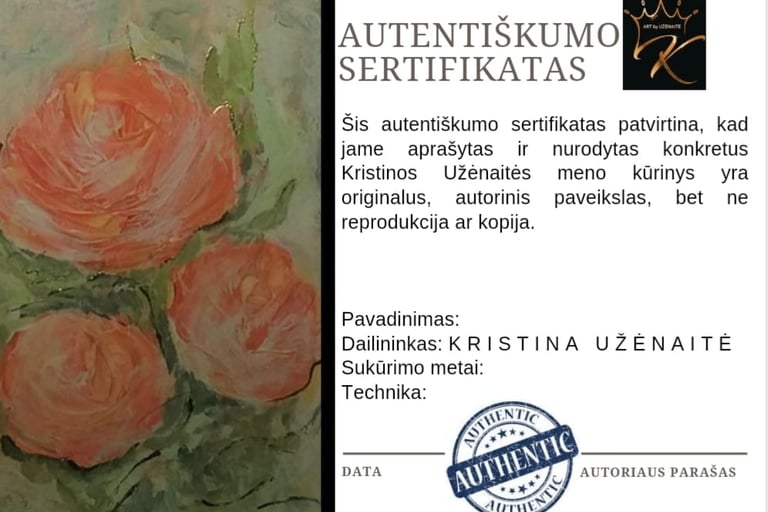 Išrašoma sąskaita faktūra ir išduodamas autentiškumo sertifikatas.
